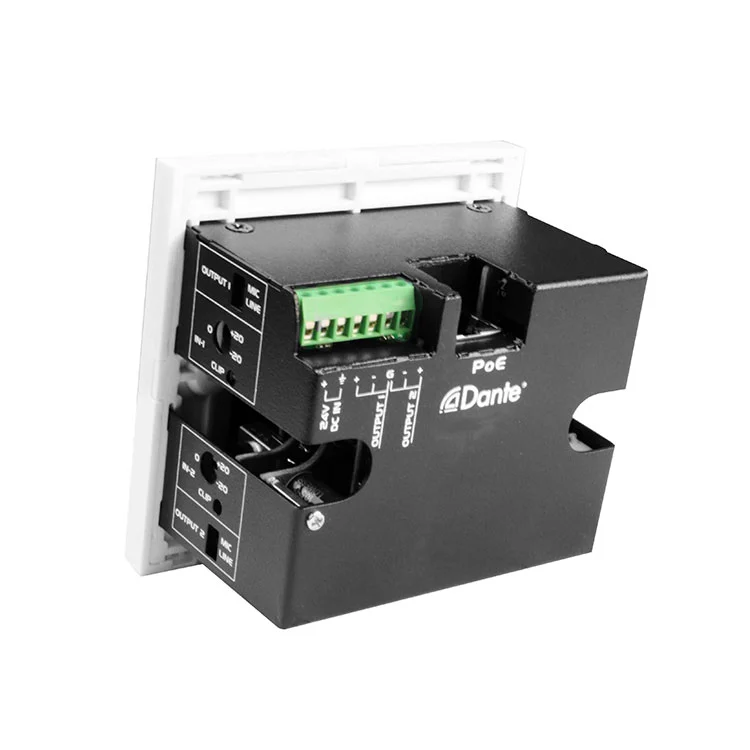 2C Dante ինտերֆեյս 2 MIC / LINE մուտքերը X 2 ելքային միջերեսի միջերեսը կատարյալ է պրոֆեսիոնալ աուդիո ծրագրերի համար, ինչպիսիք են կոնֆերանսի սենյակները, ուղիղ ձայնային ստուդիաները եւ տեղադրված AV համակարգերը, որտեղ հուսալի է դահլիճի ֆակտորով: Դրա պատի տեղադրումը թույլ է տալիս մաքուր եւ արդյունավետ ինտեգրվել տարբեր միջավայրերի, բարձրորակ աուդիո կատարումը պահպանելիս: