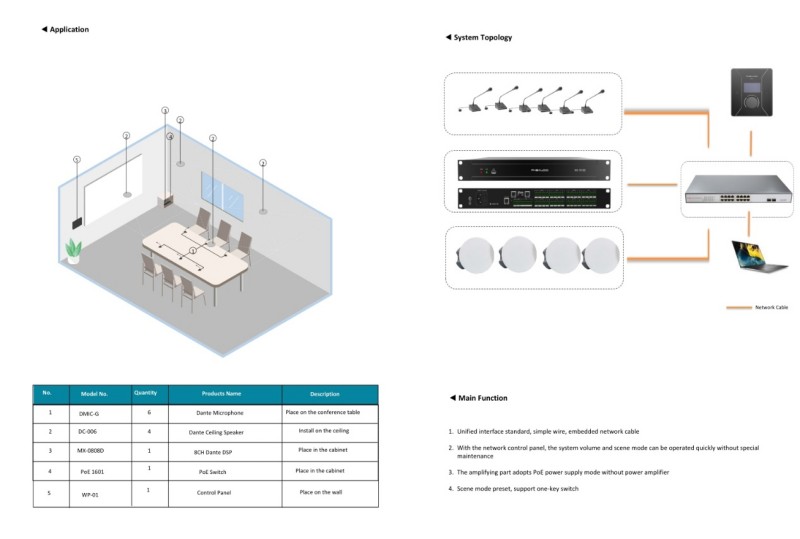 o Poe էլեկտրամատակարարման ինտեգրում. Համագործակցեք Poe անջատիչների հետ `գիտակցելու համար մեկ մալուխային էլեկտրամատակարարում + Dante միկրոֆոնների / բարձրախոսների փոխանցում (օրինակ, MXA շարք):
